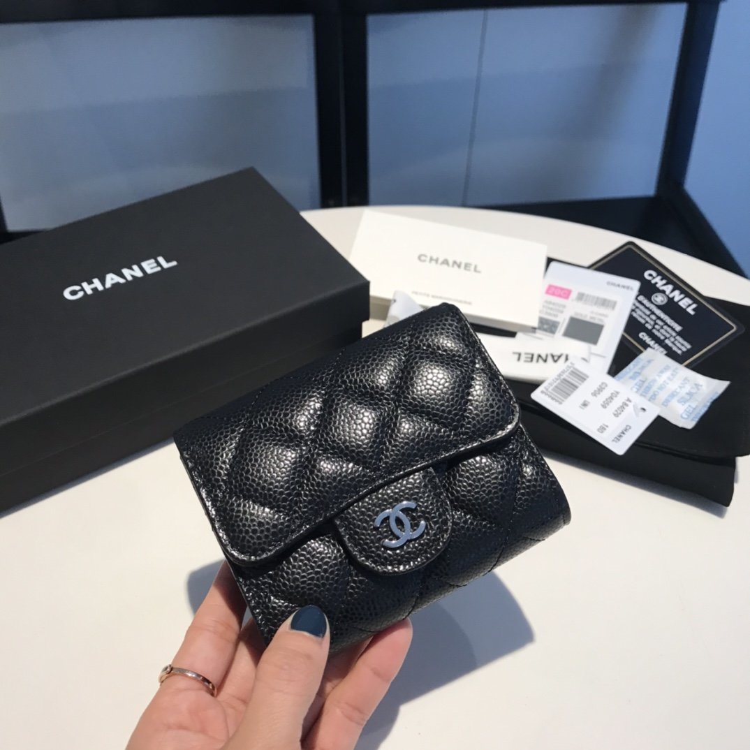 Ch**el CO-CO Classic Card Holder 11cm/4.4in Silver Hardware For Women Black AP0214 Y01480 C3906