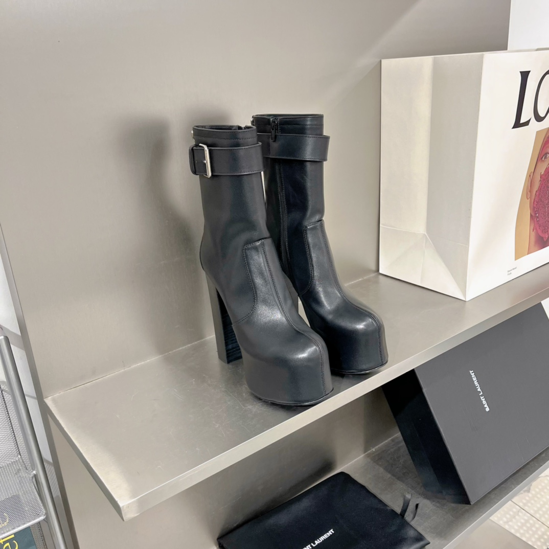 Sa1nt Lau*nt Women’s Cherry Buckle Platform Booties Black For Women Y51 6876621Y8001000